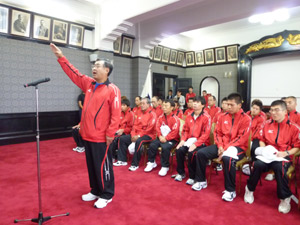 千葉県で開催される障害スポーツ壮行会が和歌山県庁で開催されました。今月23日から三日間に亘って競技が繰り広げられます。陸上、水泳、ボーリングなどの競技の代表選手が集まり、知事から県旗を受け取りました。和歌山県代表選手としての活躍と好成績を期待しています。