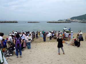 続いての地引網はKさんが主催しているものです。ここもご家族の皆さんが参加されたふれあいの集いで和やかなイベントとなりました。ここでも挨拶の時間をいただきましたことに感謝しています。