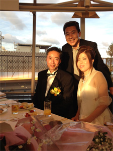夕方からはパーティに出席しました。めでたく結婚された木谷さんと宝子さんの二人をお祝いするパーティです。二人は共に音楽家で、夫の木谷さんはピアニスト、宝子さんはボーカルとピアノです。二人はライブ開場で出会って今日の良き日へと進展していったのです。