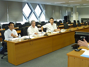 最初に和歌山県総合防災課を訪ねて、平成23年9月の台風12号被害の状況と、現在取り組みを行っている「和歌山県復旧・復興アクションプログラム」について説明を行いました。