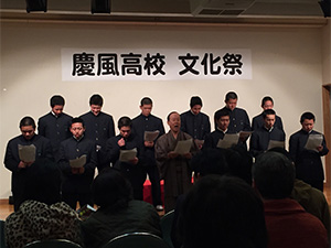 和歌山私立慶風高校の文化祭にお邪魔しました。毎年、この時期に文化祭が開催されているもので、今年も参加してきました。落語や手品、詩吟やパソコンコンクール、ハンドベル、そしてミュージカルなどを出し物として披露してくれた楽しい文化祭でした。この学校では生徒と先生の距離が近いので、生徒と一緒に先生が出演しています。ハンドベルの演奏にはギター演奏で先生が参加、詩吟やミュージカルにも先生が参加して会場を沸かせてくれました。