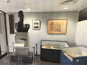 また相模原にある外務省の研修所にも陸奥宗光外務大臣の胸像が飾られています。外務省に入省した職員はこの研修所で研修を受けることがありますが、若い外務省職員を見守ってくれる存在が、やはり陸奥宗光氏なのです。このように外務大臣室、外務省、外務省の研修所、そして和歌山市の岡公園にある像を含めて4人の陸奥宗光が現在に生き続けているのです。和歌山市と外務省を今も結ぶ役割を果たしてくれている偉大な存在です。