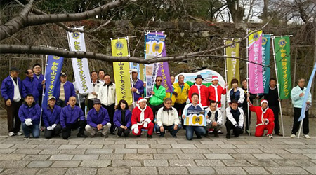 午前に和歌山城の清掃活動を行いました。少し寒い朝でしたが、みんなが集まり清掃を行うと体が暖まり、とても気持ちの良い朝になりました。この清掃は和歌山市内のライオンズクラブでクリスマス清掃を計画し実施したものです。年末でもあり参加者は約50人でしたが、和歌山城の一の橋付近と場内をメンバーで清掃しました。
