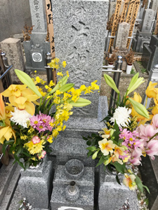 お墓に着いた最初に戻りますが、お墓にはきれいな花が供えられていました。11月6日の火曜日に、母と友人のYさんがお花を供えてくれていたのです。Yさんから「先週の火曜日、お母さんと一緒に『よってって広場』に行ってお花を買って来ました」と聞いていたことを思い出しました。生前の母からも「Yさんについて行ってもらってお墓参りに行ってきました。良いお花が安く売っていたので、いつもより豪華な花を供えました」と聞いていたことも思い出しました。そのためこのお花をそのままにして、持参したお花を周囲に供えて豪華さを出しました。たくさんのお花を供えて幸せな空気の渦巻くお墓になりました。