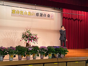 皆さんこんにちは。本日の「菜の花の集い第13回感謝の会」の開催を心からお祝い申し上げます。今回は13回目の開催となりますが、皆さんの参加で和歌山市を盛り上げてくれることを嬉しく思います。和歌山市は歌の好きな人が多くて、毎日のようにカラオケやライブで音楽にあふれているまちです。ところが感染症の影響を受けて一昨年から歌声が少なくなっていました。令和4年に入ってから和歌山県や和歌山市でも感染症が増えてきたことから、一層、自粛ムードになってきています。