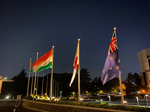 夜、会議を行ったホテルの外に出たところ、インドとオーストラリアの国旗が掲揚されていました。両国首脳が宿泊している場所だと聞きました。このことも幸運だと感じています。