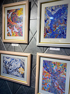 さて画廊ではオーナーの渡里さんが歓迎してくれ、壁に掲げている白龍を観ながら懇談しました。近くで観ると、白色は西の方角を指すものであり、西から人物が表れて空を駆け抜けるような勢いがありました。険しいけれどその奥には優しさが宿った瞳を持っていて、いざという時には本気で力を発揮するような威嚇の姿を感じました。