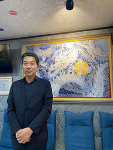 オーナーから「この絵からは迫力を感じられるでしょう」と話してくれた通りの作品でした。白龍に肖ろうと作品の前で写真を撮影しました。この写真を田村さんに送ったところ即座に「かっこいいわ。白龍に似ています」と伝えてくれました。白龍の力をいただきたいと思います。