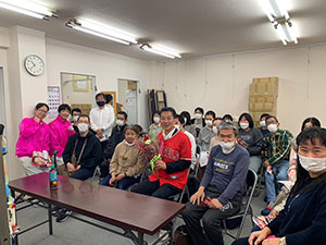 パンダ作業所で集会を開催してもらいました。ここで働く皆さんと職員さんに集まってもらって演説を行いました。4年前の演説のことを覚えてくれている方もいて、事前打ち合わせでは僕のことを「ロケットの人でしょう」と話してくれたと聞きました。4年前に伝えたロケットの夢が現実になろうとしているのです。