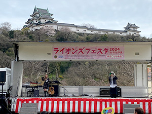 昨年から企画を進めてきた「ライオンズフェスタ」を開催しました。テーマは「2024inわかやま 青空こども食堂」で、子ども食堂や児童養護施設の皆さんを招待して、春の楽しいひと時をプレゼントしようという企画でした。会場の和歌山城西ノ丸広場は、桜の季節でもあり大勢のお客さんで賑わいました。