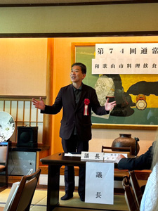 和歌山市料理飲食業組合総会に出席しました。総会では組合長から建設的な挨拶がありました。組合長の挨拶の趣旨は次の通りです。