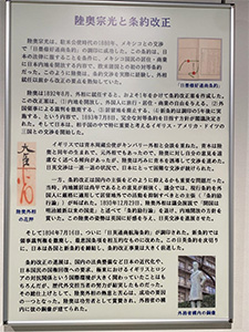「条約改正の大業は維新以来国家の宿望に係り、之を完成せざる間は、維新の鴻業も尚ほ一半を剰すに均し」です。この言葉は明治28年、条約改正事業について陸奥宗光伯が回想した言葉として記されています。これを現代語に意訳すると次の通りになります。