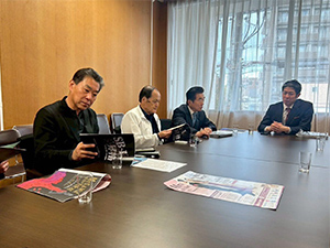 和歌山県を拠点として活動している「ワンリーズ和歌山」の上田代表を始め選手の皆さんと共に知事表敬訪問を行いました。今シーズンの報告と来シーズンの抱負と、和歌山県への要望を伝えました。今シーズン対戦チームは名だたる企業のチームが大半で、地方都市のチームが勝ち進むことは奇跡だと言われました。バスケットボール界からは「ワンリーズ和歌山」がSB2リーグで全勝優勝したこと、SB1チームとの入れ替え戦でも勝利したことへの驚きがありました。